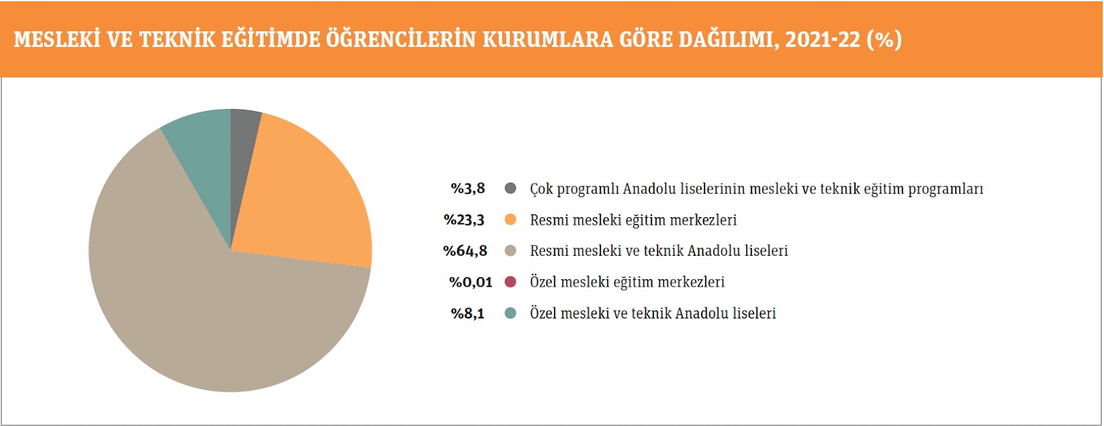 Ortaöğretimle ilgili son yıllarda karar alıcıların gündeminde yer alan konulardan biri mesleki ve teknik eğitimdir (MTE). MTE, Şûra kararlarında, orta vadeli planlarda ve kalkınma planlarında öncelikli alanların başında geliyor. MTE kurumları, verilerin paylaşıldığı yıllarda devamsızlığın ve sınıf tekrarının daha yüksek, ulusal ve uluslararası değerlendirmelerde öğrenci başarısının daha düşük olduğu ve sosyoekonomik durum ve öğrenci başarısı ilişkisi düşünüldüğünde gelir düzeyi daha düşük hanelerden çocukların eğitim gördüğü kurumlardı. Ekim 2021’de tamamlanan “Mesleki Eğitimde 1.000 Okul Projesi” gibi çalışmalarla başarı ve imkân farklarını azaltılmasının amaçlanması olumludur.